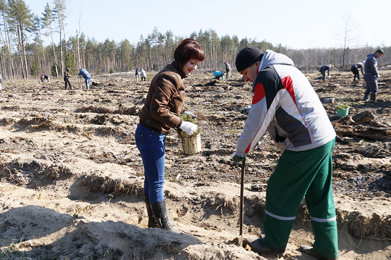 Коллектив райисполкома принимает участие в республиканской акции «Неделя леса» на протяжении 12 лет и тем самым вносит значительный вклад в озеленение родного края.