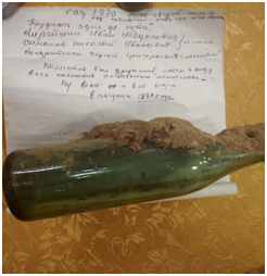 Традицию решили продолжить после найденного послания при ликвидации старого здания Рогачёвского лесничества из далёкого 1970 года от коллектива. Теперь оно хранится в музее Рогачёвского лесничества вместе с другими старинными вещами найденными лесниками.
