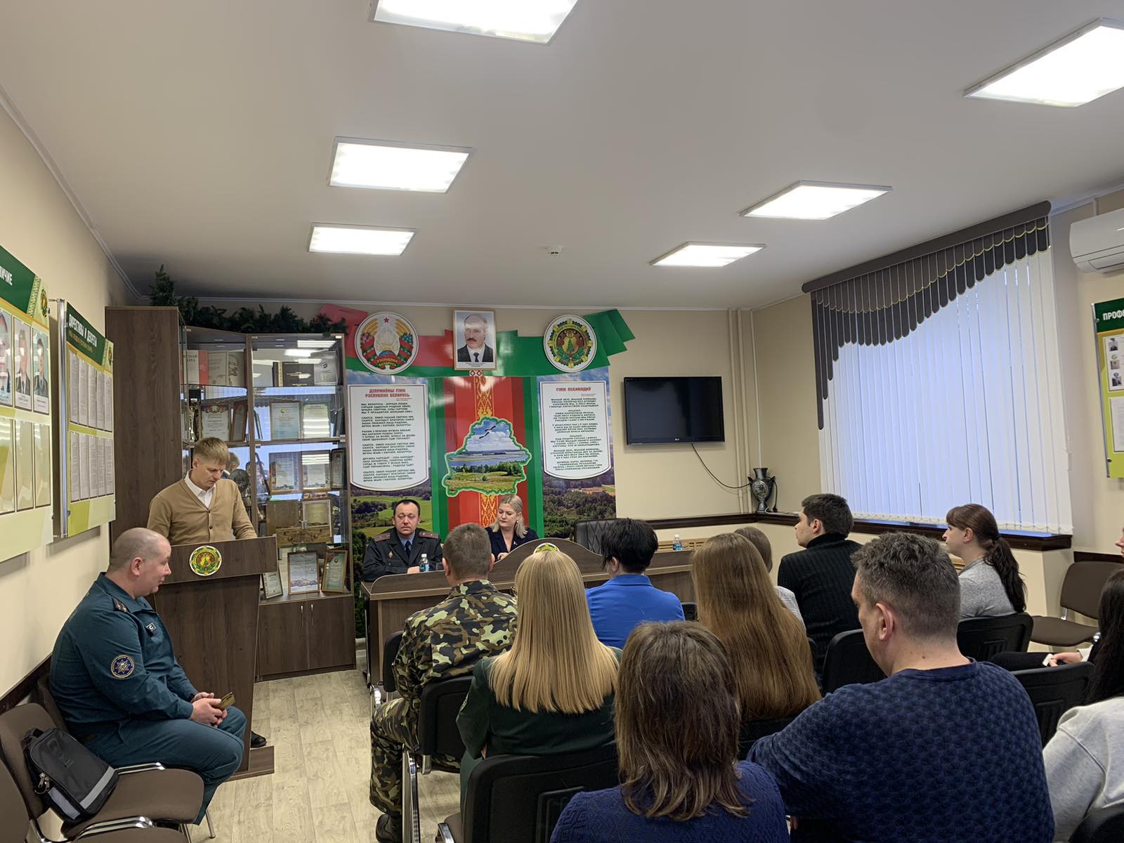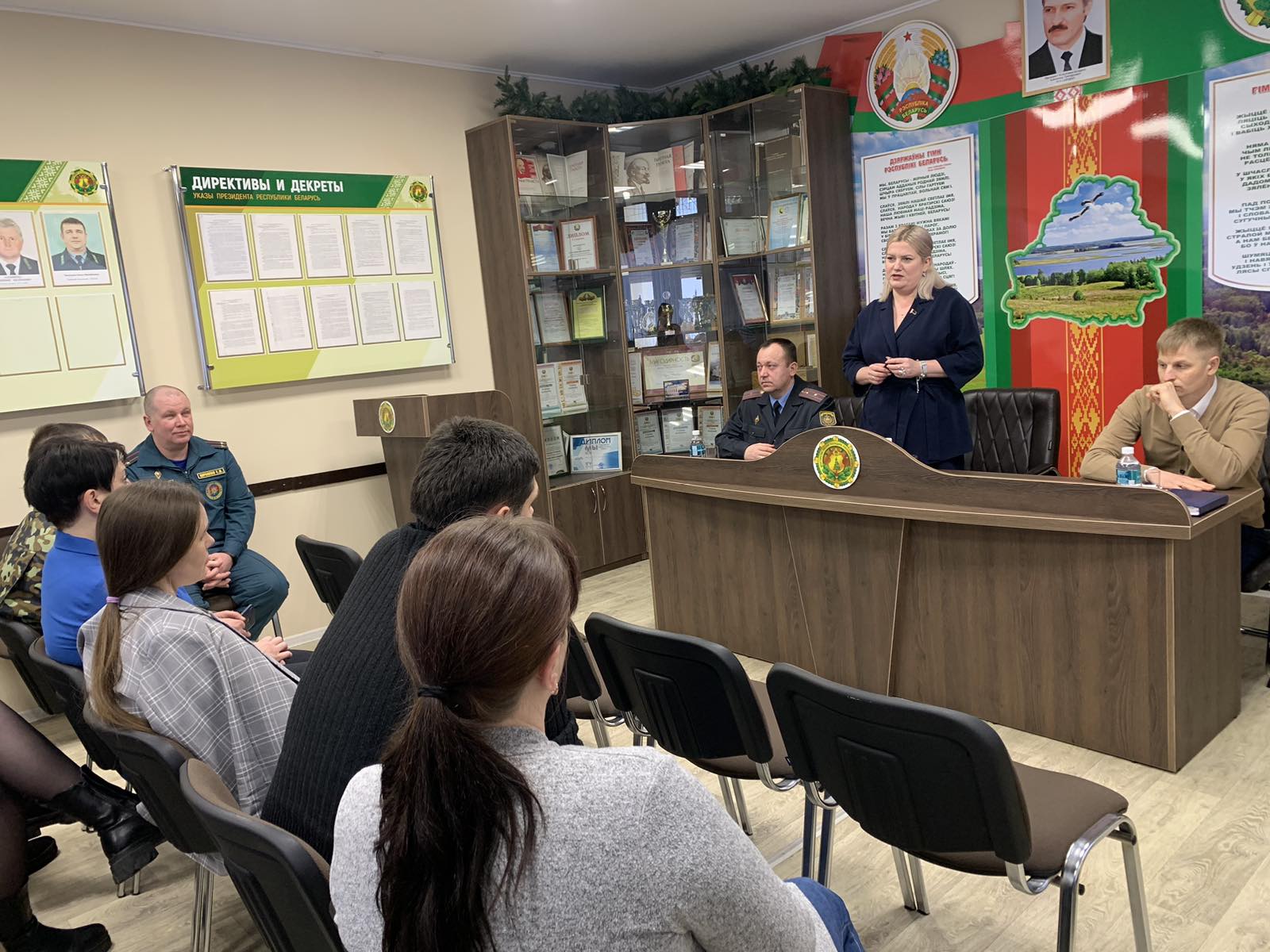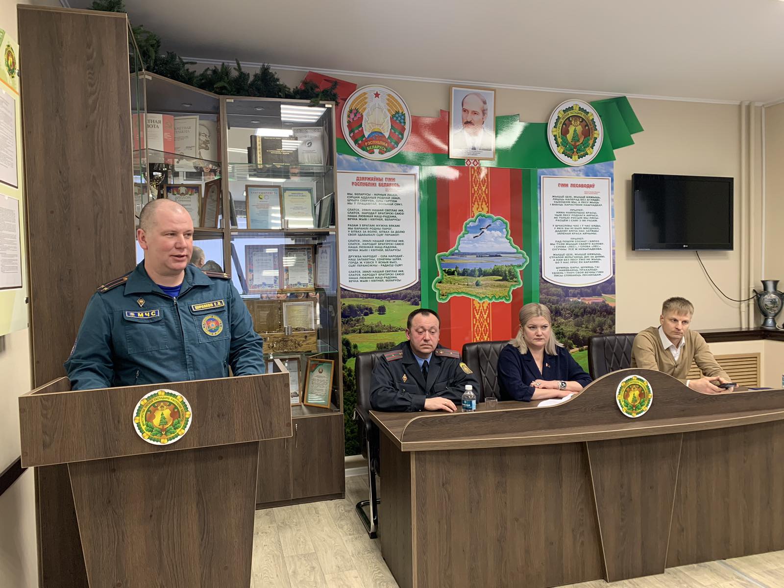О социально-экономическом развитии района, мерах профилактики и безопасности жизни и здоровья взрослых и детей прошла беседа трудового коллектива Рогачёвского лесхоза с компетентыми лицами: Екатерина Рождаева, заместитель председателя райисполкома, Илья Герман, начальник отдела экономики райисполкома, Евгений Шрамов, заместитель начальника Рогачевского РОЧС и Вадим Ясенецкий, старший инспектор ИДН Рогачевского РОВД, майор милиции.