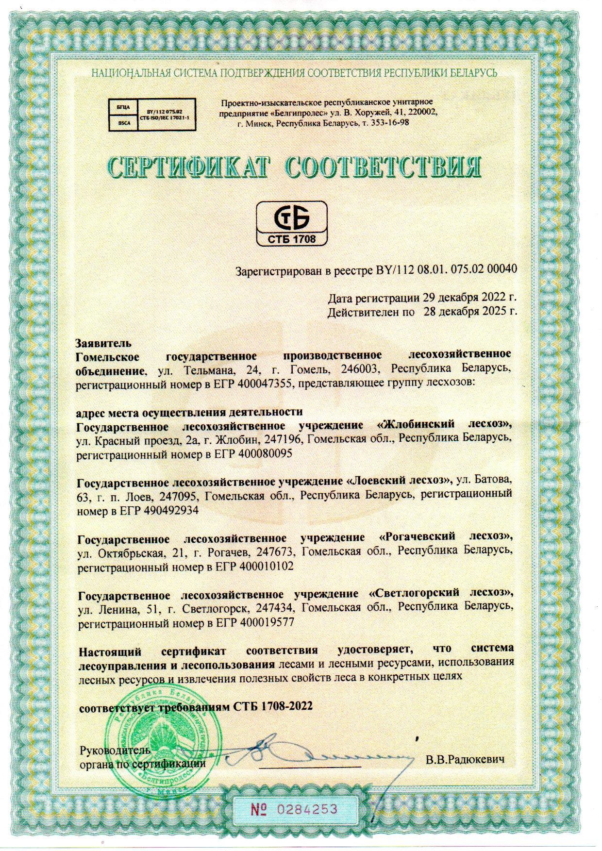 Сертификация PEFC в ГЛХУ "Рогачевский лесхоз"